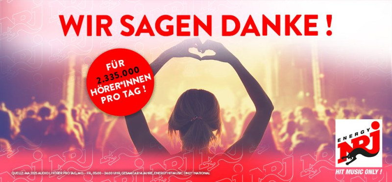 In der heute von der agma veröffentlichten Media-Analyse ma 2025 Audio I wurden der deutschen ENERGY Gruppe mit ihren Stationen in Berlin, Hamburg, München, Nürnberg, Stuttgart, Nordrhein-Westfalen und dem über DAB+ national verbreiteten ENERGY Programm insgesamt 2,335 Millionen Hörer pro Tag* ausgewiesen. Dies ist eine Steigerung um 4,1 Prozent** im Vergleich zur vorherigen Ausweisung.
