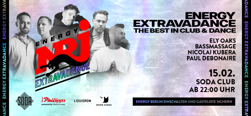 ENERGY EXTRAVADANCE ist die am prominentesten besetzte DJ-Radioshow in Deutschland mit DJs wie Robin Schulz, Martin Garrix, R3hab, Steve Aoki, Purple Disco Machine, Alle Farben sowie unseren ENERGY Resident-DJs Bassmassage und Dominik Koislmeyer. Sie läuft jeden Freitag und Samstag Abend auf allen ENERGY-Stationen über UKW, DAB+, App und Webstream.