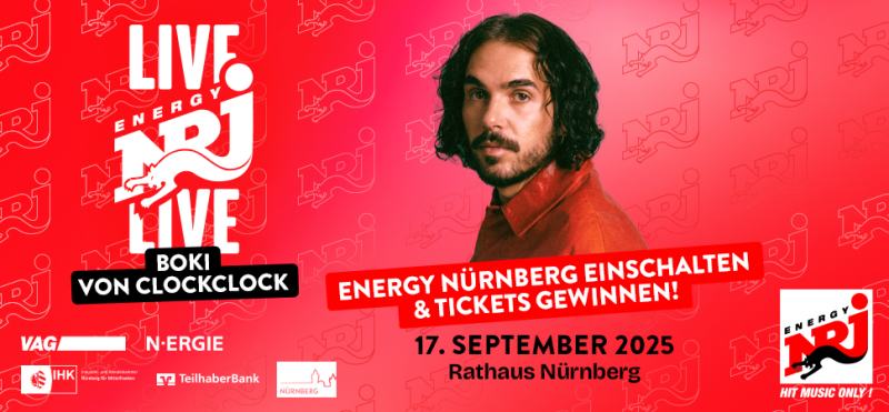ENERGY LIVE, die europaweit bekannte Konzertreihe der ENERGY/NRJ-Gruppe, mit Boki von ClockClock findet am 17. September im historischen Rathaus am Rathausplatz in Nürnberg statt.