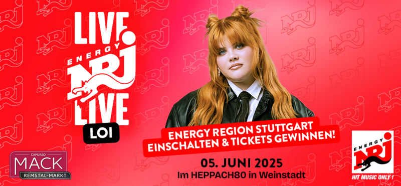 ENERGY LIVE, die europaweit bekannte Konzertreihe der ENERGY/NRJ-Gruppe, mit LOI findet am 05.Juni im Heppach80 in Weinstadt statt.