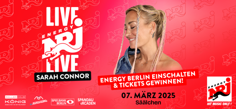 ENERGY LIVE, die europaweit bekannte Konzertreihe der ENERGY/NRJ-Gruppe, mit SARAH CONNOR findet am 07.März im Säälchen in Berlin statt.
