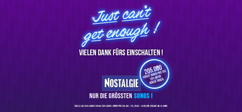 NOSTALGIE ist ein Angebot der ENERGY-Gruppe in Deutschland und wird u.a. von der ENERGY MEDIA GmbH vermarktet.
